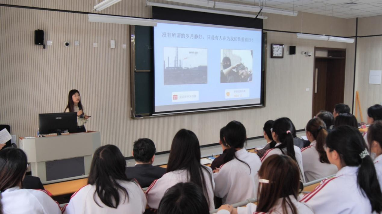 随后,中共东营市委讲师团理论宣讲员、马克思主义学院教师李京润以“岁月静好,需要我们共同守护”为题开展主题宣讲。李老师紧扣主题,结合鲜活案例与校园实际,系统阐释了总体国家安全观的核心内涵,并聚焦“十五五”新征程,指明了大学生应重点关注的国家安全领域与内容。宣讲既有理论高度,又具实践温度,使在场师生对国家安全有了更全面、更深刻的认识。