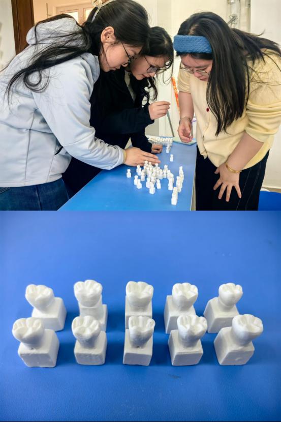 比赛现场气氛热烈而紧张。选手们精神饱满地投入到雕刻创作中,手持雕刻刀,全神贯注地凝视着手中的石膏,仿佛在雕琢一件件珍贵的艺术品。每一刀的起落都精准而有力,每一个细节的处理都细致入微。随着时间的推移,原本普通的石膏条在选手们的巧手下逐渐呈现出牙齿的形态,牙冠、牙根、牙尖等结构清晰可见,形态逼真,充分展现了选手们扎实的专业知识和精湛的雕刻技艺。选手们不断调整雕刻角度,反复比对牙齿形态,力求做到尽善尽美。比赛结束评委老师根据牙体形态、雕刻精细度、解剖特征还原度等多项指标进行综合评定。经过激烈角逐,最终评选出一等奖10名、二等奖15名、三等奖20名、优秀奖若干名。