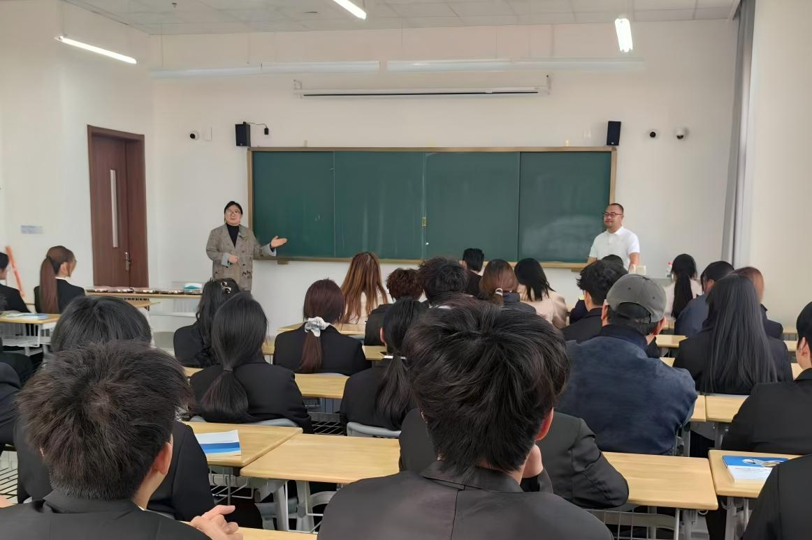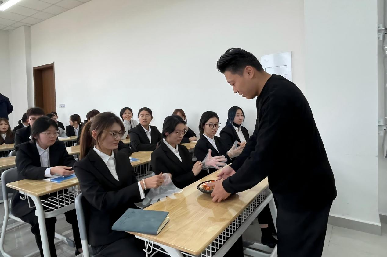 座谈结束后,刘林飞负责人面向学院在校生开展专题分享会。分享中,他详细介绍了花涧道料理的企业文化、经营理念,深入解析了当前餐饮行业的发展现状、行业痛点及未来发展前景,并结合自身从业经验,为学生提供了职业发展建议。活动现场,企业方还带来了特色产品供与会师生品尝,让大家直观感受企业的产品特色与服务理念,有效帮助学生明晰职业发展方向、提升职业认知水平、拓宽行业视野。