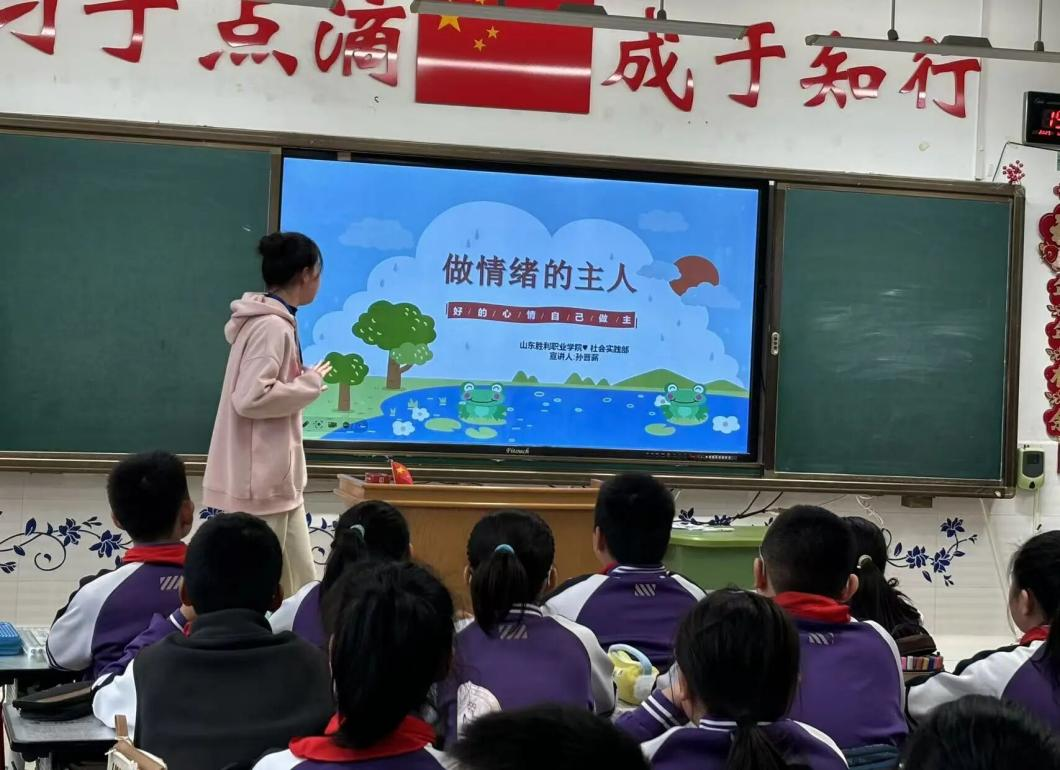 让抽象的心理知识更易理解,宣讲团队特意选取了大量贴近小学生生活的实例——“考试失利后怎么调节心情?”“和好朋友闹矛盾时该怎么办?”“被老师批评后如何平复情绪?”这些孩子们日常会遇到的场景,瞬间拉近了知识与生活的距离。成员们不仅分享了自身应对类似问题的经验,更引导孩子们认识到,消极情绪并不可怕,逃避或压抑只会适得其反,正视它、接纳它,才是与情绪共处的第一步。