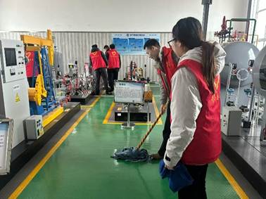 2026年3月18日上午,化工与新材料学院学生会副主席张嘉钰带领24级油气储运二班志愿者,走进油气集输仿真实训室开展卫生清扫志愿服务活动。