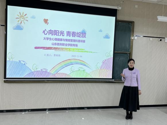费教授以“大学生心理健康与情绪管理”为主题,结合学业、人际与未来就业等现实压力,重点讲解了焦虑情绪的识别与应对技巧,引导学生以积极心态规划职业生涯,为即将到来的职场挑战储备心理能量。