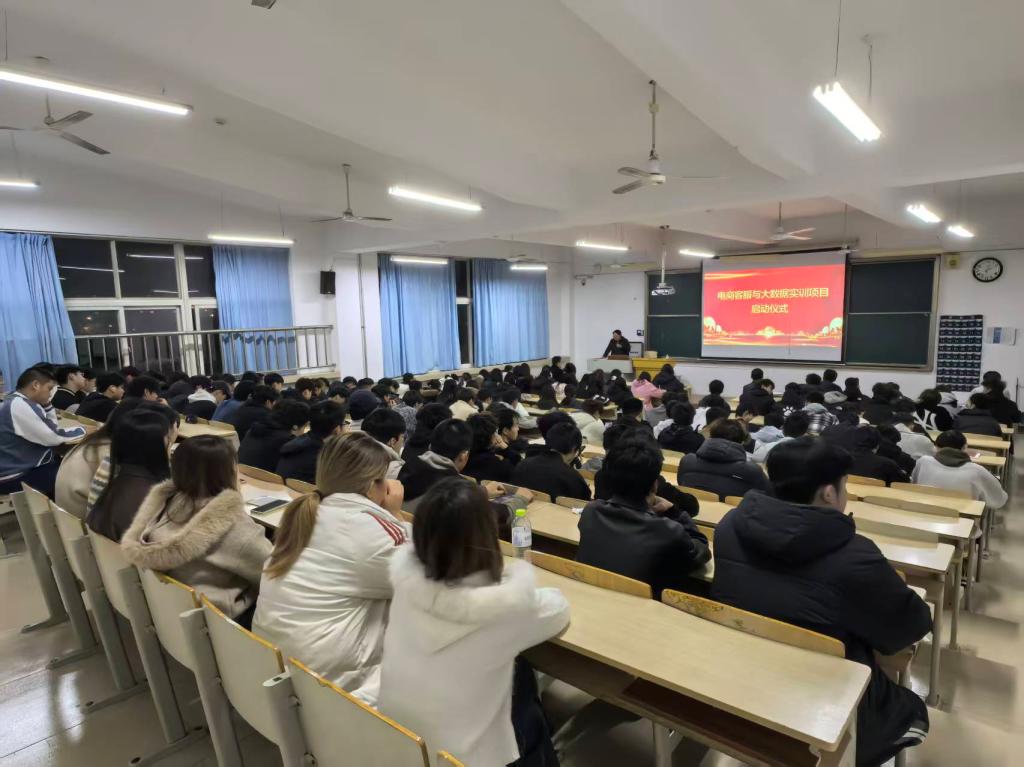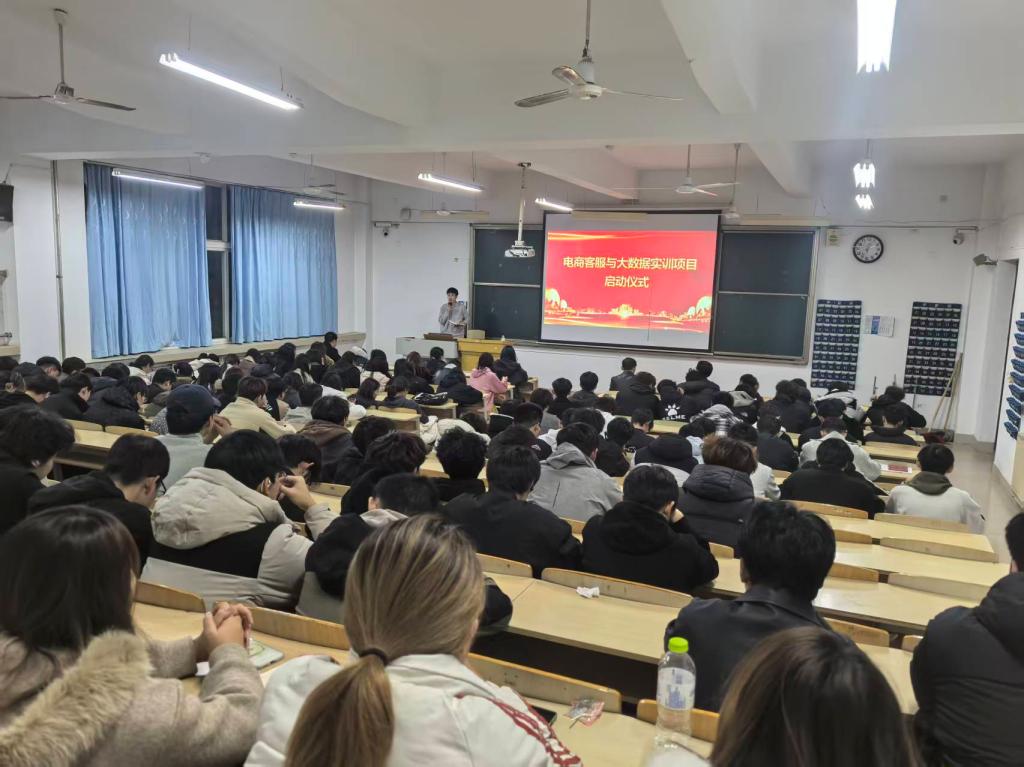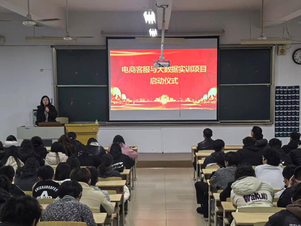 2025年11月2日晚,智能制造学院举行24级工业互联网应用专业“浪潮电商客服与大数据实训项目”启动会。校长助理、学院院长刘岩、党支部书记杨帆、副书记奚道友、副院长吴上等人出席仪式,工业互联网应用专业140余名同学参会。
