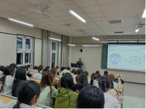 宣讲现场,济川药业人事主管吕进结合24级药学专业人才培养目标与就业特点,围绕企业发展历程、产业布局、核心产品、研发实力、企业文化等内容进行全面介绍,重点讲解了药学专业在医药研发、生产质量管理、检验检测、药品推广、药学服务等岗位的适配优势,清晰展示了从应届生到骨干员工、技术人才、管理干部的完整成长通道。